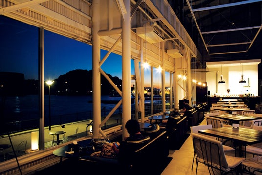 壁一面が大きなガラス窓の「24/7 coffee&roaster ujina」の特等席から臨む花火大会は格別です。