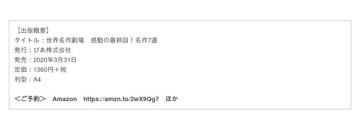 3月31日、ぴあ株式会社より、DVD BOOK『世界名作劇場 感動の最終回!名作7選』が発売となります。