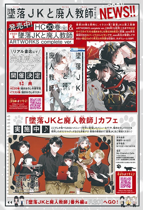 「墜落JKと廃人教師」はHC最終20巻とイラスト集「墜落JKと廃人教師 ART WORKS complete ver.」が同日発売!本誌にはSPショート番外編で登場です。