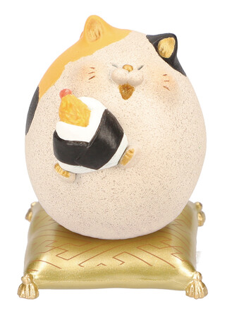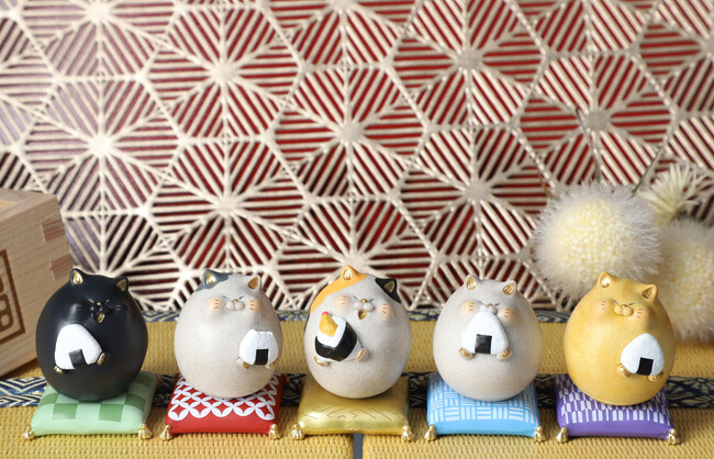 猫好き造形作家にゃん(ΦωΦ)さんが手がけるねこさんの置き物がカプセルトイになって登場いたします。ふっくらとしたほっぺやまぁるい体でおにぎりをほおばるねこさんは、手のひらサイズながらも丁寧な造形と繊細な彩色が施されています。ラインアップは、白猫さん、黒猫さん、サバ白さん、茶トラさん、三毛猫さんの全5種類で、ねこさんが座る座布団は別パーツのため、他の種類の座布団と交換して好きな組み合わせで飾ることができます。“ふくふくまんまるにゃんこを手に取って下さった皆さんの心もまぁるくまぁるくなりますように”という思いのこもった商品を、ぜひ全国のカプセルトイ自販機コーナーにてお楽しみください。
