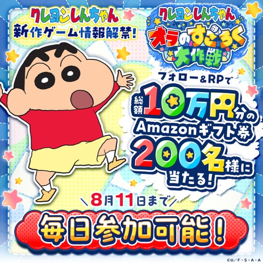 「クレヨンしんちゃん オラのすごろく大作戦」の情報公開を記念して、公式Xではフォロー&RPキャンペーンを開催中。