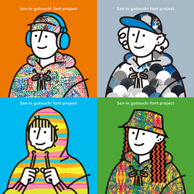 アート活動をされている障がいのある方と山陰のデザイナーが協力してフォントとパターンを制作し、収益を生みながら社会とつなげ還元する「山陰ご当地フォントプロジェクト」を進めています。売上の一部は障がいのあるアーティストに分配しております。