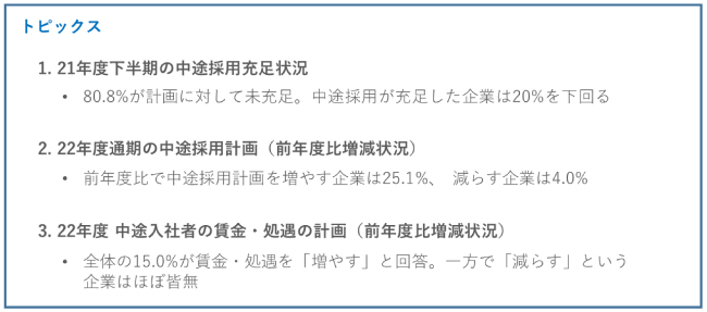22年度の中途採用「増やす」は25.1%、中途入社者の賃金等を「増やす」は15.0%