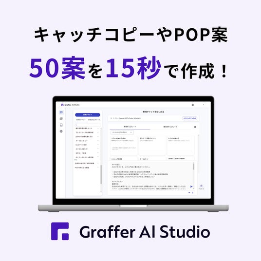 キャッチコピー50案を15秒で作成!「ゼロから検討していて時間がかかる…」「商品数が多く手が回らず魅力的な紹介文が書けていない」というお悩みも解決!店頭POPの案や、ECサイトに掲載する商品紹介文を、数秒で作成することができます。