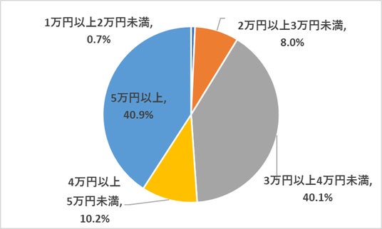 高齢者向けエアコン補助金で見ると、熱中症対策のものが多いこともあり、補助額5万円以上と4~5万円の割合が高くなります。