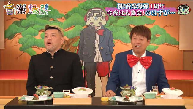 暴露トークスペシャルに続いて、番組1周年を記念した大宴会を開催!しかしここで、くっきー!から突如「音楽爆弾」終了の発表が…