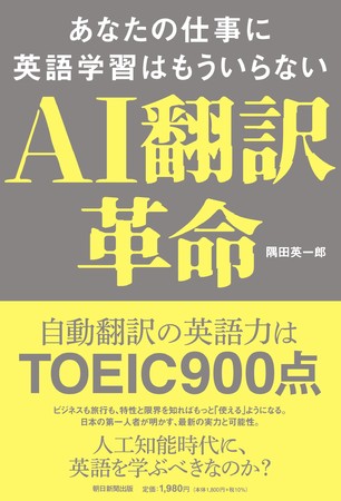 朝日新聞出版は8月19日(金)、書籍『AI翻訳革命 ―あなたの仕事に英語学習はもういらない―』を発売しました。日本における自動翻訳研究の第一人者である隅田英一郎氏が、人工知能を活用した自動翻訳の最新の実力や、徹底的に活用するための手法、今後の進化の可能性などについて解説します。