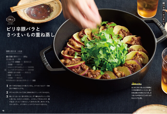 寒い季節にぴったりの煮込み調理と蒸し調理を中心に、ちょっとしたおかずやおつまみになりそうな一品料理から、大人数で分けられるボリュームのあるメインディッシュまで、バリエーション豊かなメニューを約60品収録しました。