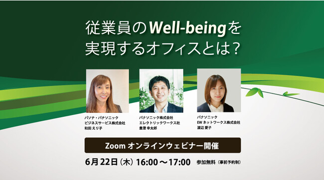 パソナ・パナソニック ビジネスサービス株式会社(本社:大阪府大阪市、代表取締役社長 佐野 克也、以下PBS)は、パナソニック株式会社エレクトリックワークス社、パナソニックEWネットワークス株式会社と共に、ウェビナー『従業員のWell-beingを実現するオフィスとは?』を、6月22日(木)に開催いたします。