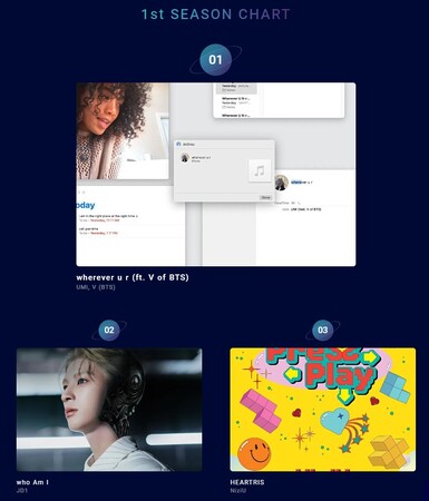 2024年1月よりスタートしたK-STAR CHARTの2024年1月~3月の投票実績を基にした累計ポイント数により、「1st Season Chart」が確定。シーズンチャートMVPには、3カ月連続月間MVPを獲得したUMI,Vの「wherever u r (ft.V of BTS)」が輝きました。シーズンチャートの2位はJD1の「who Am I」、3位はNiziUの「HEARTRIS」という結果となり、『K-STAR CHART presents POP-K TOP10 Friday』4月19日(金)放送回において発表されました。