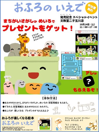 新井洋行先生の新作絵本『おふろの いえで』の発売を記念したスペシャルイベントを、10月14日(土)に文教堂 二子玉川店にて開催いたします。