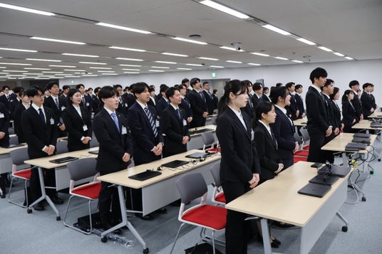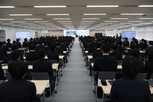 シャープは、本日、大阪市中央区にある本社会場にて「2026年度入社式」を開催しました。新入社員313名が参加し、社長執行役員CEOの河村哲治の祝辞の後、新入社員代表2名が入社にあたっての抱負を述べました。最後に当社会長の劉楊偉からもビデオメッセージで新入社員を激励しました。