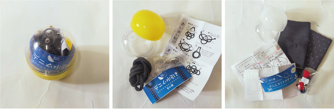 国産ジーンズの発祥地である岡山に拠点を構え、“MADE IN 岡山”にこだわるアイムスによるデニムガチャ。デニムの端材を組み合わせるとミニチュアのシャツやバッグが作れます。