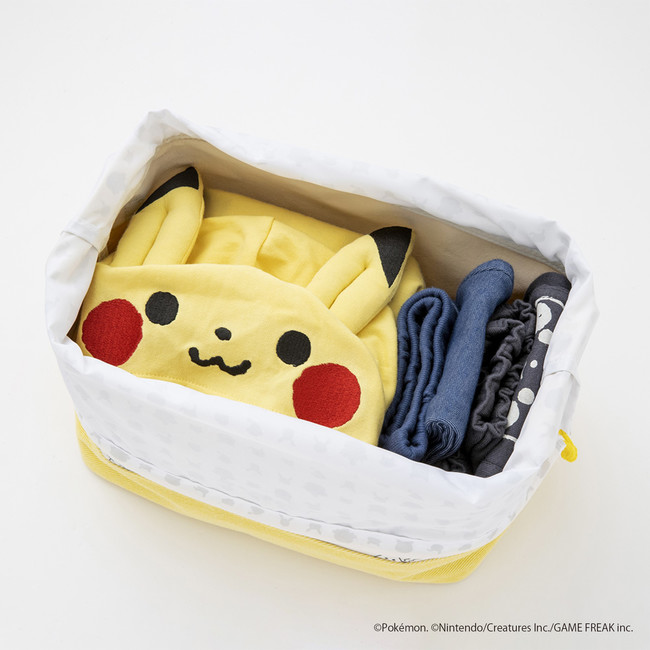 おなじみのピカチュウやイーブイ、デデンネに加え、新たにゲンガーとミミッキュも仲間入り。ひょっこり顔を出すポケモンたちはもちろん、優しいイエローの配色と生成りのキャンバス風生地で心温まるデザインに。