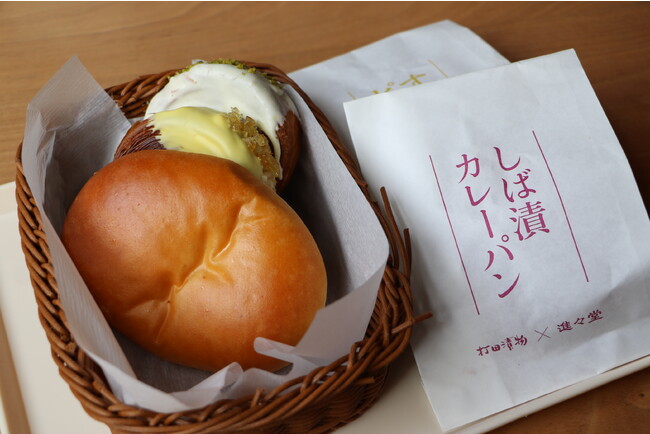目玉商品の、すぐきが入ったピロシキと、しば漬けが入ったカレーパンを頂きます。