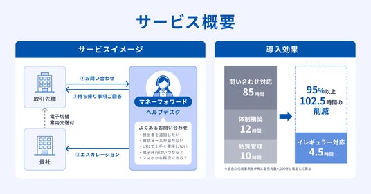 「ヘルプデスクオプション」は、『マネーフォワード クラウドインボイス』のユーザーに寄せられる、取引先からの電子請求書への切り替えや利用方法に関する問い合わせ対応をマネーフォワードが代行するBPOサービスです。