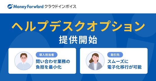 株式会社マネーフォワードは、請求書送付システム『マネーフォワード クラウドインボイス』において、「ヘルプデスクオプション」の提供を開始します。本オプションは、請求書を受け取る取引先からの電子化に関する問い合わせを代行するサービスです。これにより、『マネーフォワード クラウドインボイス』で請求書を発行するユーザーは、請求書の電子発行・送付をスムーズに行うことができ、業務効率を大幅に改善し、スピーディーに電子化へ移行できます。