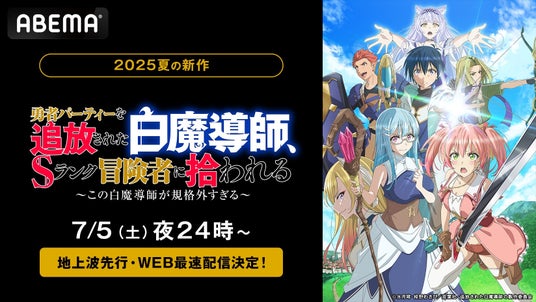 新しい未来のテレビ「ABEMA」は、2025年新作夏アニメ『勇者パーティーを追放された白魔導師、Sランク冒険者に拾われる ~この白魔導師が規格外すぎる~』を、2025年7月5日(土)から毎週土曜日夜24時より、地上波先行・WEB最速配信いたします。