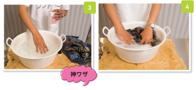 4.衣服を裏返して、擦らないように注意しながら押し洗い