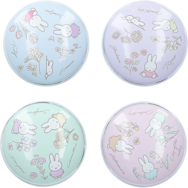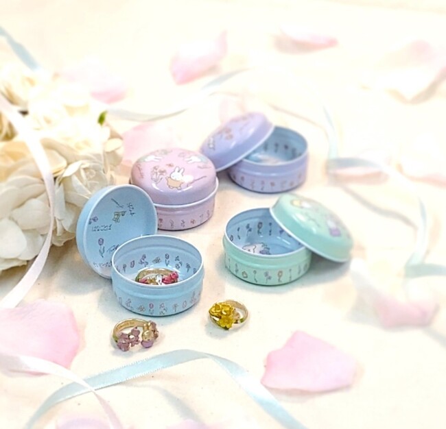 12か月の誕生花とミッフィーをデザインした「バースデーフラワーシリーズ」より、丸いフォルムのミニ缶ケースが発売中です。12か月の誕生花のイラストを3種ずつ4つに分けて、それぞれのミニ缶の表面や背面、中面にデザインし、蓋を開けると内側にはそれぞれの花言葉が記されています。直径5cmほどの缶で、アクセサリーや薬などを入れるのに丁度良いサイズです。同じく誕生花をモチーフにした「Flower Miffy パルナートポックコラボ フラワーリング」を入れて、缶に記された花言葉を添えてセットでプレゼントするのもおすすめです。