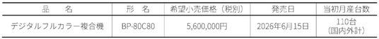 シャープは、業界トップクラス(※1)の高速印刷性能を備えたデジタルフルカラー複合機<BP-80C80>を、本年6月15日に発売します。普通紙に加え、厚紙もカラー印刷80枚/分の高速出力に対応しました。