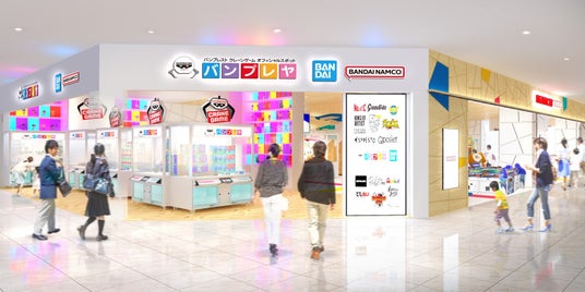 アミューズメント施設「ナムコ」には、ナムコ限定景品やアミューズメント専用景品、お菓子など、多種多様なアイテムが入ったクレーンゲームを中心に、みんなで盛り上がれるゲーム機やお子さまが大好きな乗り物などをそろえます。また、バンプレストブランドの中から今注目の厳選した景品を取り扱うコーナー「バンプレヤ」を併設します。