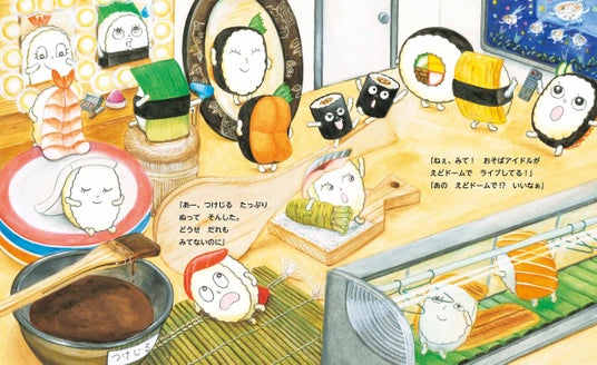 今日のライブもお客さんはゼロ? 13人の悩めるおすしアイドルのもとに、さすらいのアイドルプロデューサーが登場! 特上のアイドルをめざして、みんなで鮮やかに生まれ変われ!! がんばるメンバーを応援したくなる、推し活絵本! 第12回MOE創作絵本グランプリ受賞作品。