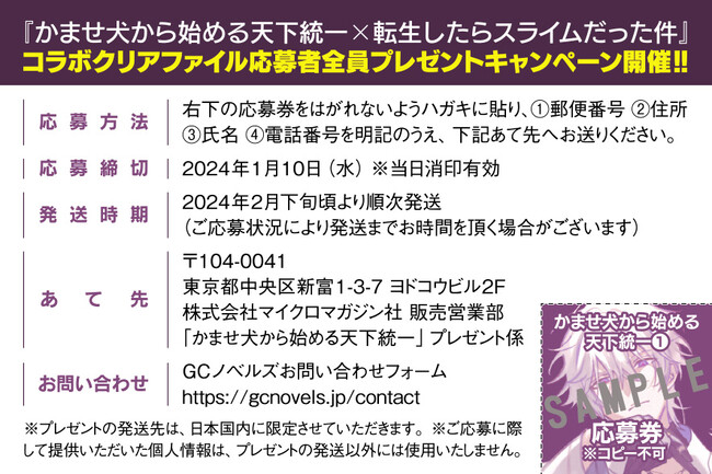 応募者様全員に『かませ犬から始める天下統一×転生したらスライムだった件』