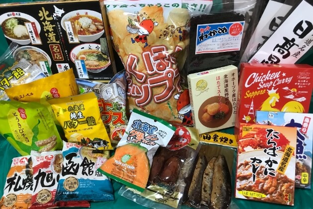 おやつやレトルト食品、買い置きしておきたい食材など、北海道のおみやげ店さながら、にぎにぎしく!