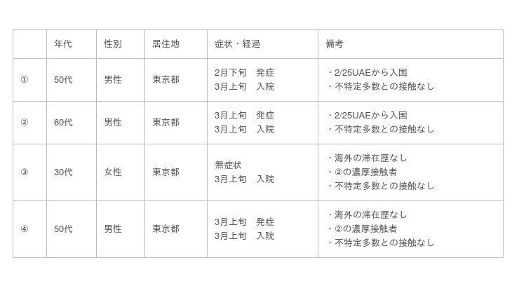 ※上記のほか、都内でこれまで、変異株スクリーニングで陽性となったものは、合計8例あります。内訳は、国立感染症研究所(以下、「感染研」という)においてゲノム解析で確定に至らなかった例(*) が6例、感染研のゲノム解析で確定された例が2例となります。