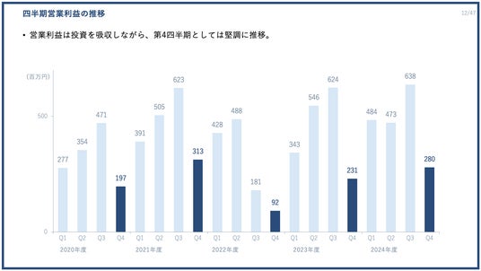 続いて、四半期営業利益は投資を吸収しながら、第4四半期としては堅調に推移しました。