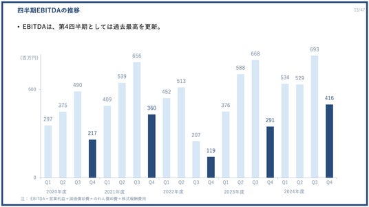 続いて、四半期EBITDAは、第4四半期としては過去最高を更新しています。