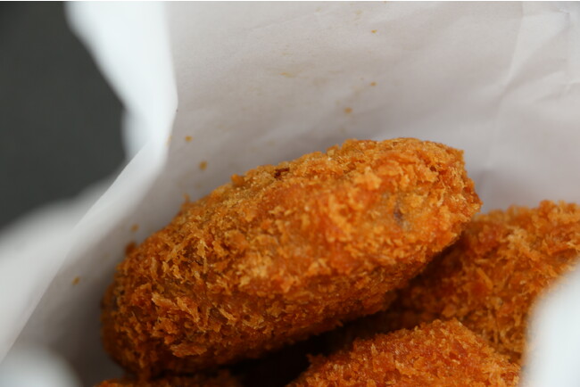 最初に見つけたのは、創業100年以上の精肉店。お好みの商品を注文してから店先で揚げてもらえます。揚げたてのビーフコロッケとモッツァレラチーズフライのお味は?
