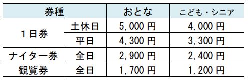 ※1日券は22時まで有効です。ナイターは15時30分以降のご入場になります。