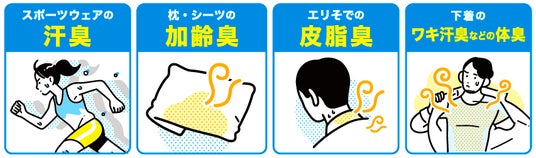 ●スポーツウェアの汗臭、枕・シーツの加齢臭、エリそでの皮脂臭、下着のワキ汗臭などの体臭にも