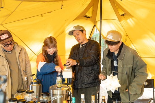 5月9日(土)~10日(日)の2日間、東京ビッグサイトで開催される、暮らしと遊びの総合展示会「FIELDSTYLE TOKYO 2026」にも参加する人気YouTuber伊豆のぬし釣りの2人を講師に迎え、豪快な巨大タープ設営や焚き火、絶品キャンプ飯を学ぶ。