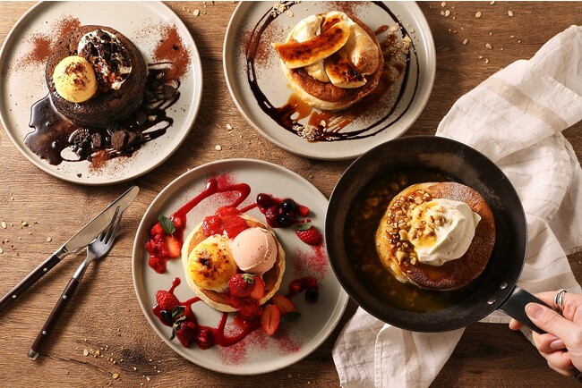 ひとつひとつ店内で丁寧に焼き上げる、「YURT」自慢のパンケーキ4種をぜひご堪能ください。