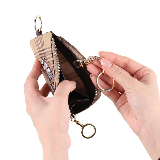 内生地にはホームズセットをイメージしたアイコンがデザインされ、キーチェーン付きで便利に使用できます。