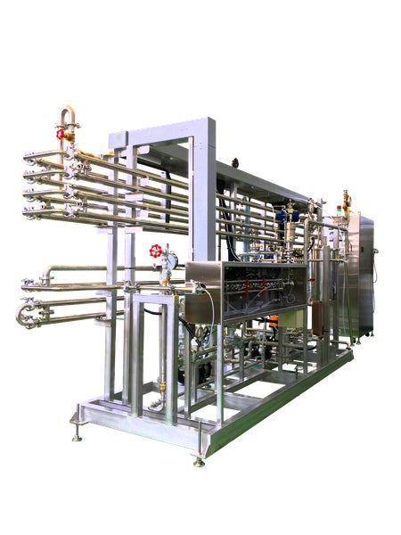 清酒超短時間火入れ装置-スーパージュール加熱殺菌装置-瓶燗火入れや熱交換器による火入れより短時間加熱ができ、熱媒を用いないで加熱するため、伝面でのオーバーヒートが起きず、清酒が受ける熱ダメージは最低限になります。