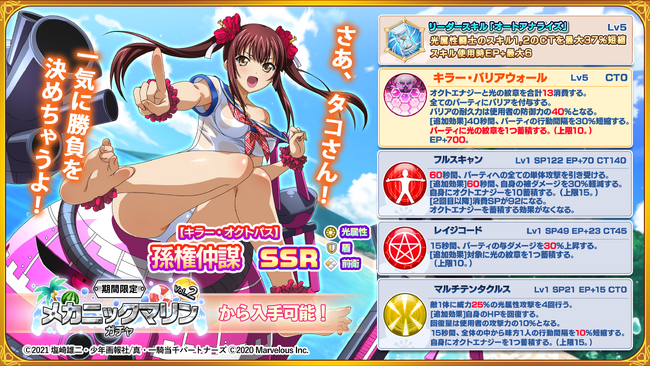 本日開始の「メカニックマリンガチャVol.2」では、新たに「【キラー・オクトパス】孫権仲謀」(CV: 大橋 彩香)」が登場。