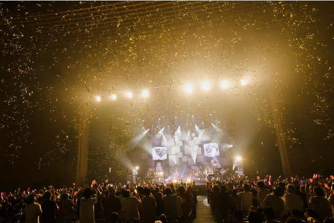 ソロ活動再開後に放たれたアクティヴなナンバー「恋するリボルバー」では、爆音と共にキャノン砲も。会場に舞った金のテープには、伊藤からの直筆メッセージが記されており、手にしたファンにはまたとない記念となったであろう。本編最後は昨年のツアーでも披露された「美しき日々」で締めくくった。