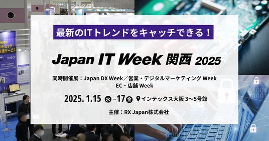 RX Japan株式会社(本社:東京都中央区、代表取締役社長:田中 岳志)は2025年1月15日(水)~17日(金)の3日間、「Japan IT Week 関西」を「Japan DX Week 関西」「営業・デジタルマーケティング Week 関西」「EC・店舗 Week 関西」とあわせてインテックス大阪にて開催いたします。