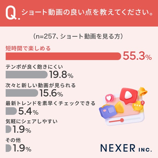 ショート動画の良い点に関する調査を行いました。