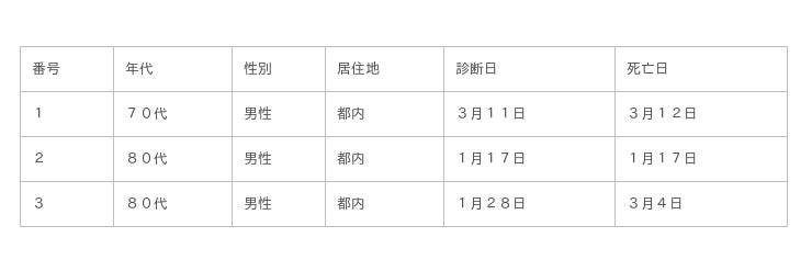 都内で新型コロナウイルスに感染した方が死亡されましたのでお知らせします。