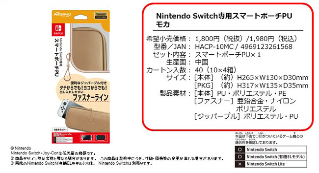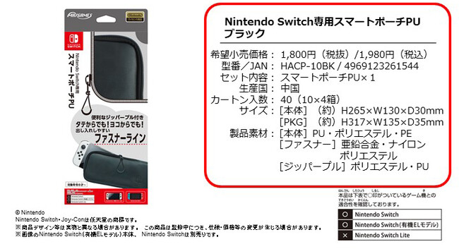 株式会社ハピネット(本社:東京都台東区、代表取締役社長:榎本誠一、証券コード:7552)の子会社である株式会社マックスゲームズ(本社:東京都台東区、代表取締役社長:野々山正孝)は、『Nintendo Switch専用スマートポーチPU』全3種を新たに2024年3月22日(金)下旬より全国の小売店様、オンラインショップ様等にて発売を予定しています。