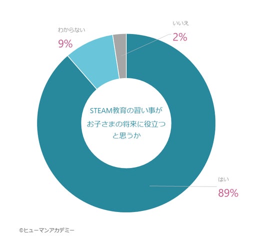 教育事業等を展開するヒューマンアカデミー株式会社(本社:東京都新宿区、代表取締役:川上輝之、以下「当社」)の児童教育事業で、ヒューマンアカデミージュニア STE“AMスクール ロボット教室に通う保護者の方を対象に、「STEAM教育に関する意識調査」を実施・分析をしました。合わせて「学校のプログラミング教育に対する意識調査」も行い、将来、お子さまに必要な教育について考える契機になりました。