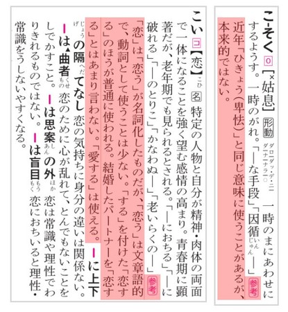 国語辞典の本文中約2700箇所に類義語の使い分けや書き方(表記)の注意点、誤りを防ぐためのポイントを「参考」欄として掲出。
