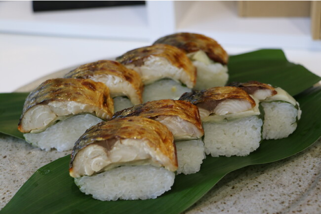 次に、鯖街道の始点・小浜ならではの名店「若廣」で、超肉厚の鯖寿司と、焼き色が黄金に輝く焼き鯖寿司を味わいます。あまりの美味しさについついお皿を独り占めしてしまう三田村です。