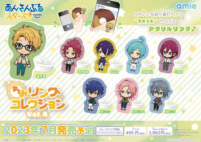 フィギュア&ホビー通販大手の「あみあみ」を運営する大網株式会社(本社・東京都文京区)は、自社が展開するグッズブランド「amie(アミィ)」から「『あんさんぶるスターズ!!』ちみリングコレクション」の「Vol.3」「Vol.4」を、発売いたします。
