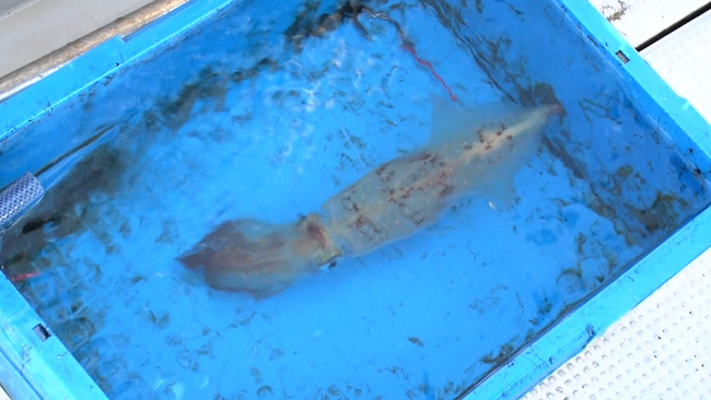 ここでのエサはなんと、生きたままのアオリイカ。